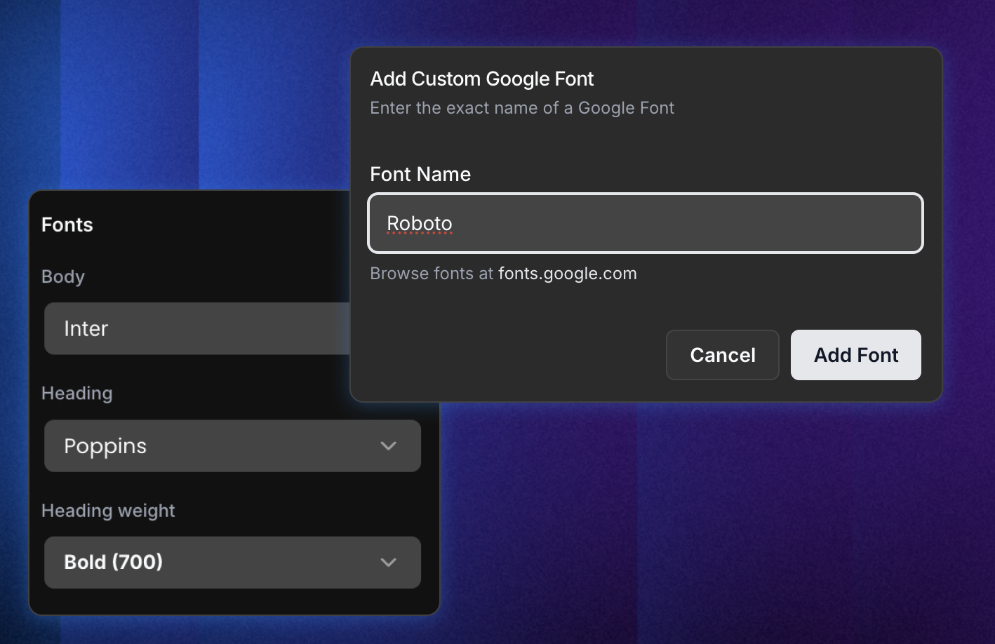 Téléchargez vos propres fichiers de police pour un contrôle total de la marque.