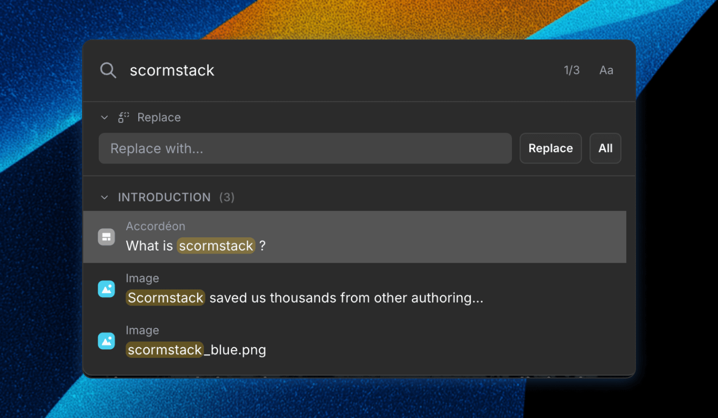 Pesquise em todos os slides, blocos e avaliações de uma só vez.